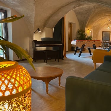 Entièrement modernisé mais respectant l'esprit des lieux, le Mas peut accueillir 12 personnes actuellement en réunissant les Gites L'Olive et Claudius, offrant ainsi un espace de retrouvailles idéal et bien équipé. En plus de l'équipement de chaque gite, vous trouverez sur place, une salle de 75m permettant des repas familiaux, un canapé lit (160) pour ajouter des couchages dans un espace nuit, un piano et un baby-foot à l'intérieur, des tables de brasserie, des hamacs, une table de ping-pong, des paniers de Discgolf (Frisbee) avec des disques et un terrain de pétanque, disponibles à l'extérieur.