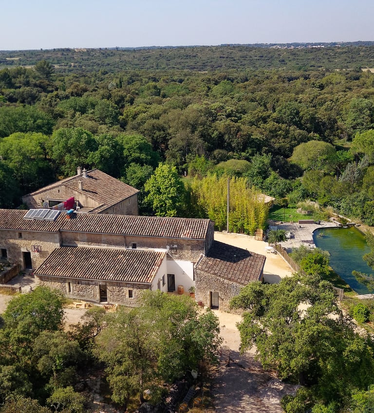 Nous habitons dans une autre aile du Mas et sommes disponibles pour répondre à vos éventuelles demandes pendant votre séjour mais nous disposons d’un jardin, d’un parking et d’une entrée situés à l’opposé de ceux des gites. Vous nous verrez passer pour aller nourrir nos animaux ou arroser notre jardin, mais il se peut aussi que nous profitions du bassin pour nous rafraichir, rassurez-vous : il est assez grand pour tout le monde !!